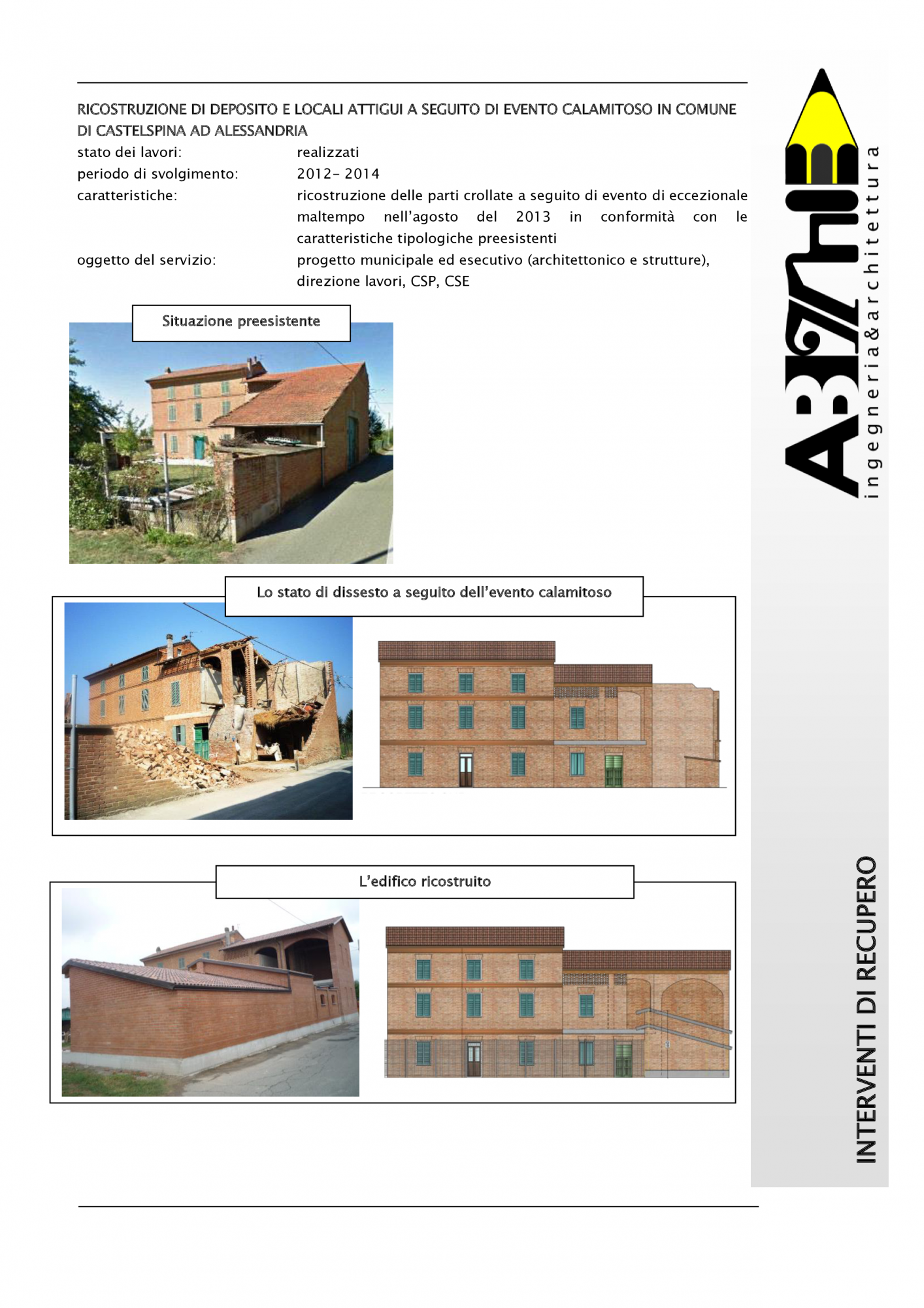 Ricostruzione di deposito e locali attigui a seguito di evento calamitoso in Comune di Castelspina ad Alessandria