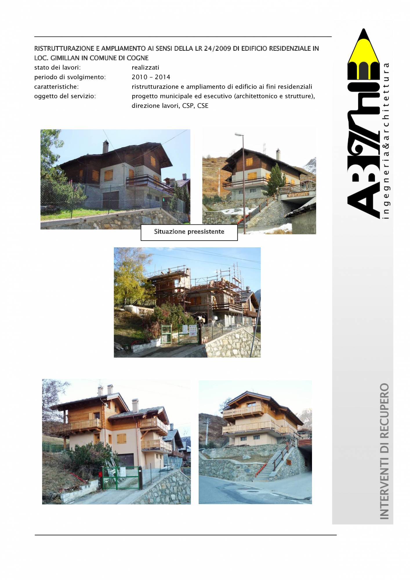 Ristrutturazione e ampliamento di edificio residenziale Loc. Gimillan in Comune di Cogne